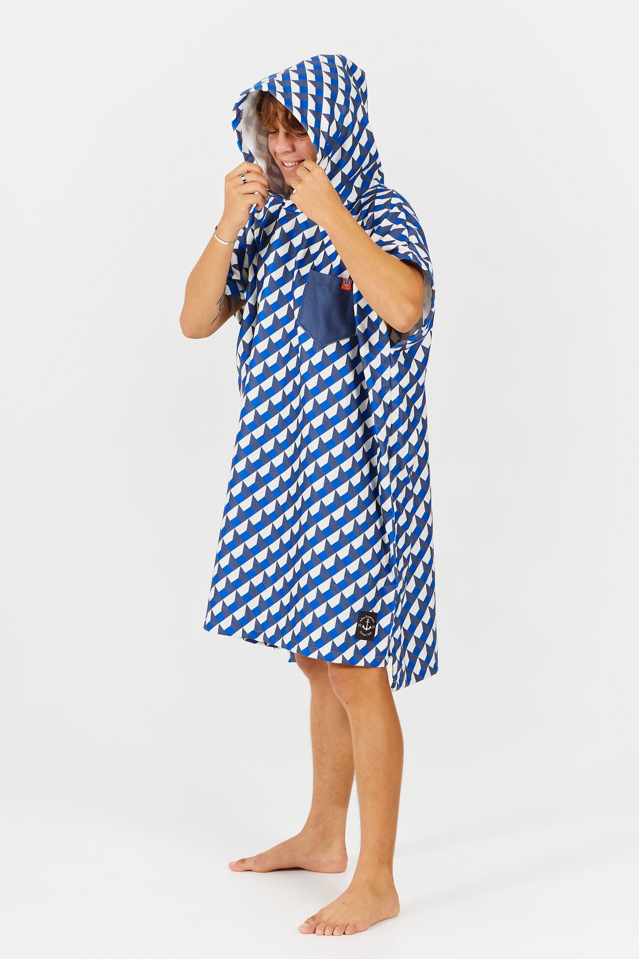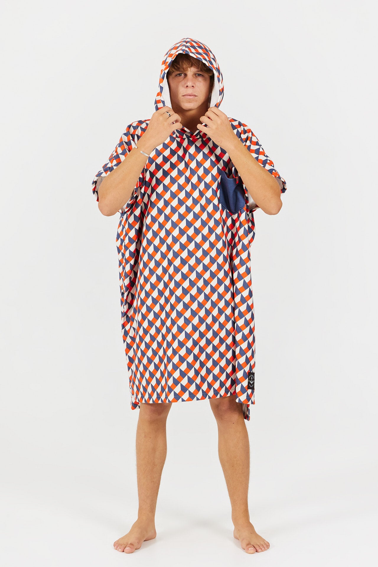 Le Poncho de bain Vertigo Poncho réinvente le style rétro avec son motif damier 3D, inspiré des carreaux des piscines old school. Une touche graphique qui évoque les clubs de natation d’autrefois tout en restant moderne.