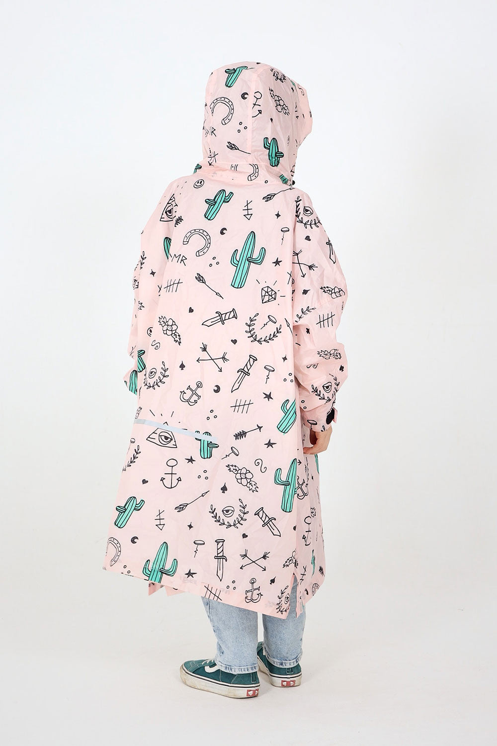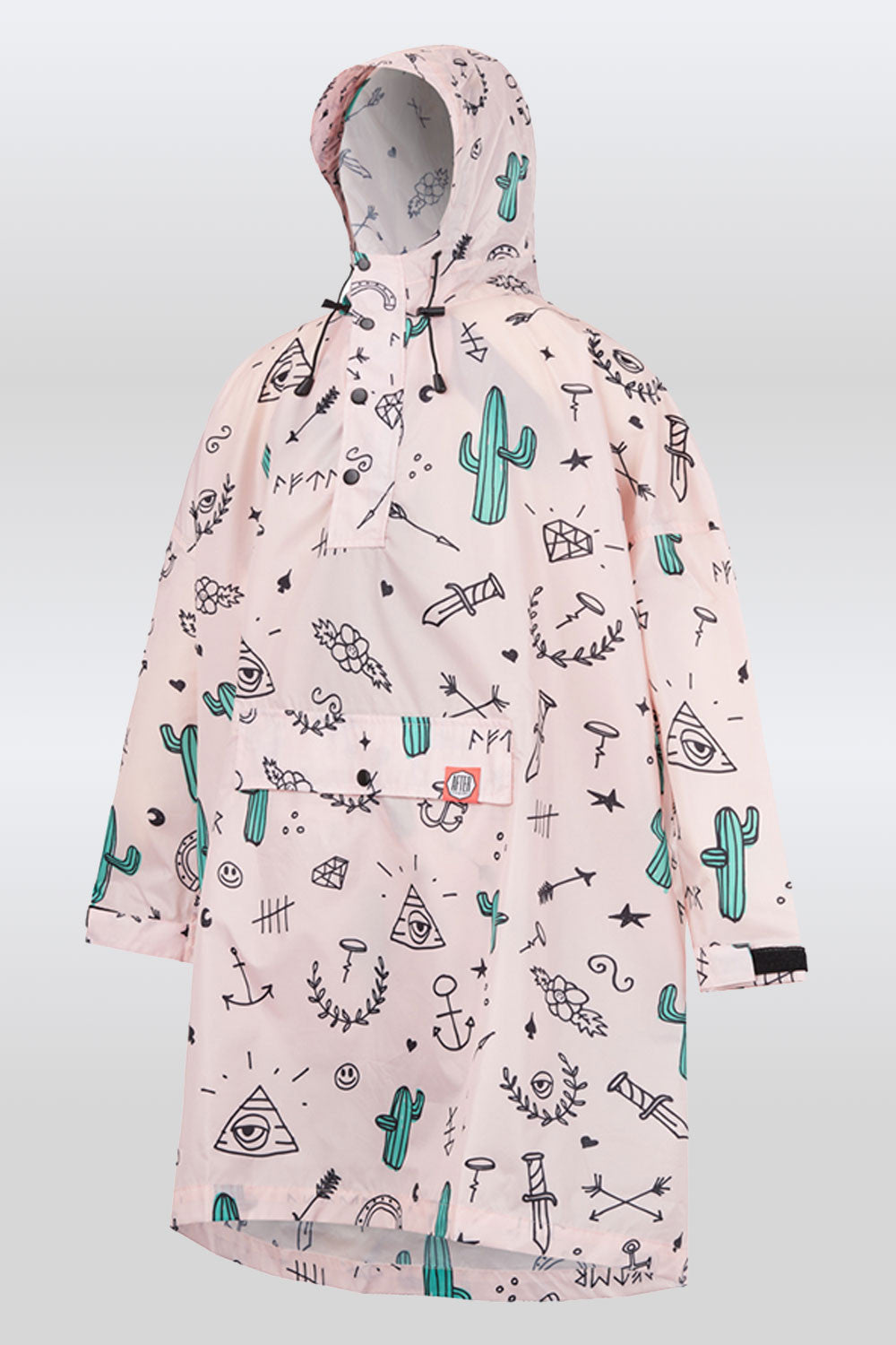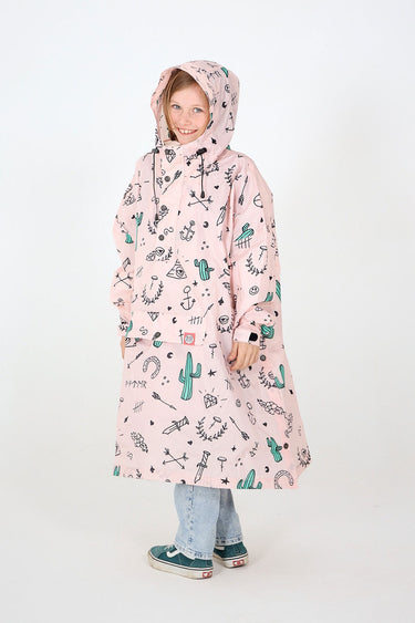 Wer hat nicht schon einmal in die Ränder seines Schulhefts gekritzelt? Die Heftränder eurer Kinder sind voller Zeichnungen – sie träumen, zeichnen und erschaffen sich ihre eigene Welt! Genau ausgehend von unseren alten Teenager-Heften voller kleiner Skizzen ist dieser Poncho entstanden. Bunt und verspielt schützt dieser Poncho euer Kind mit jeder Menge Attitude vor dem Regen!