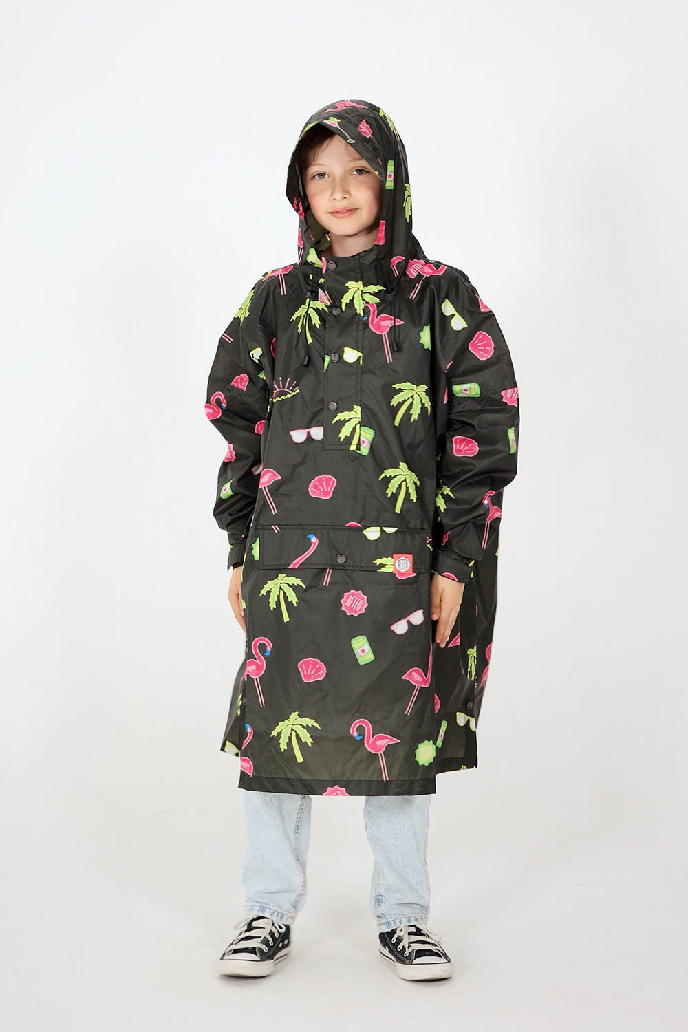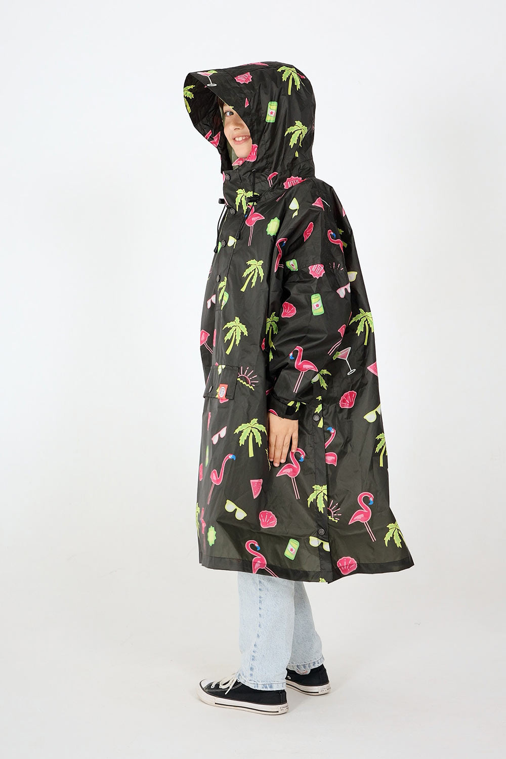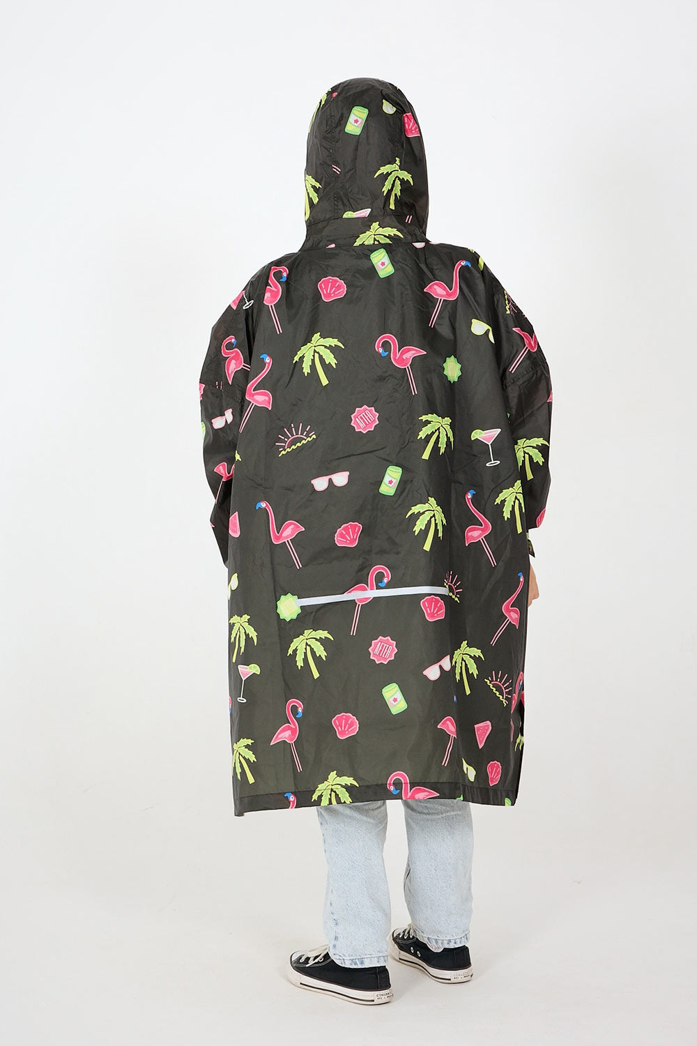 Wer hat gesagt, dass man im Regen keinen Spaß haben kann? Mit dem Paradise-Poncho werden selbst regnerische Tage zu kleinen Ferienmomenten. Die Flamingos und Palmen entführen direkt in ein sonniges Reiseziel!