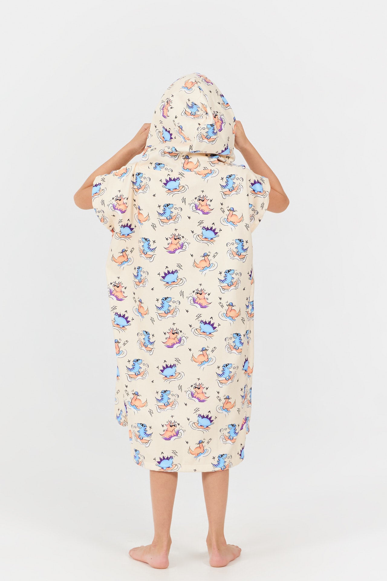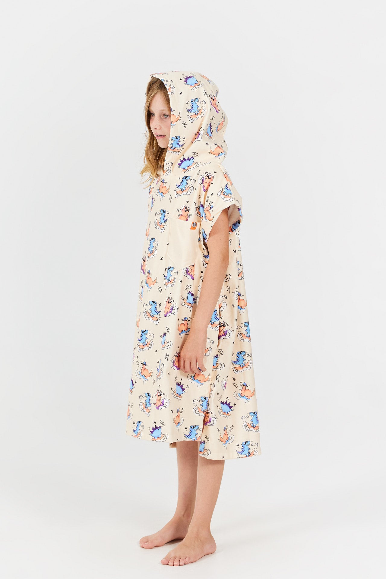 Nach dem Baden, Schwimmen oder einem Tag am Strand hüllt der Dino Peach Umziehponcho Ihr Kind in einen weichen, saugfähigen Kokon dank seines 100% Baumwoll-Frottee-Innenfutters. Seine weite Passform und die breiten Armöffnungen ermöglichen ein schnelles Anziehen, auch für die Kleinsten. Die große Kapuze sorgt für optimales Trocknen von Kopf und Haaren. Die Außenseite aus 100% Polyester setzt das Dinosaurier-Motiv im Cartoon-Stil auf Pfirsich-Hintergrund optimal in Szene, für einen verspielten Look, den alle Kinder lieben. Perfekt für zu Hause, Pool oder Strand vereint dieser Badeponcho Praktikabilität, Komfort und Stil in einem einzigen Accessoire.