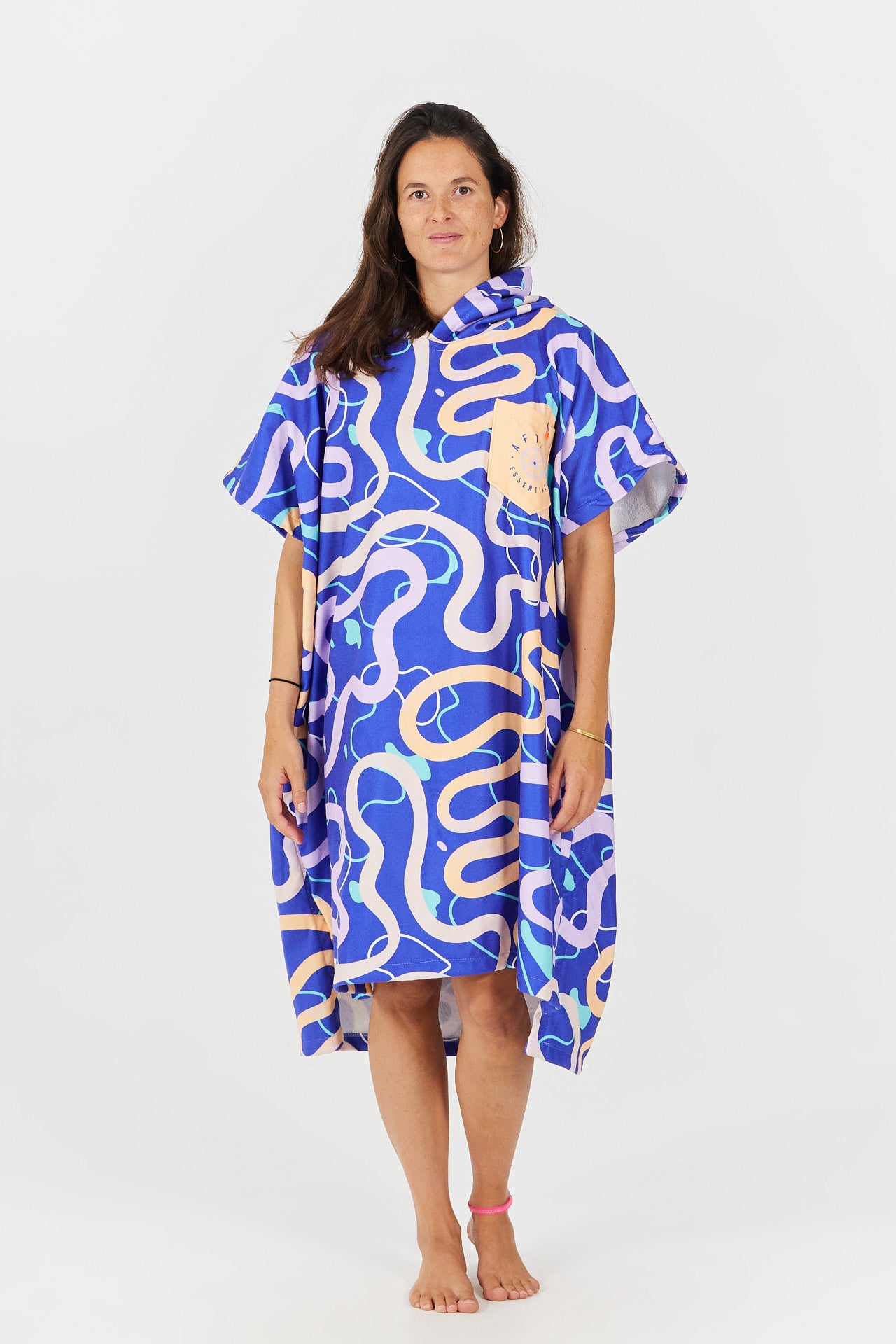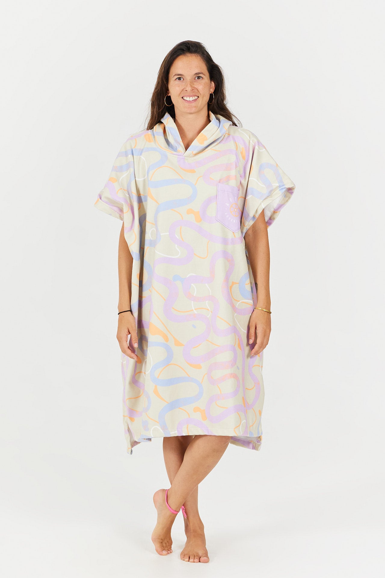 Die große Kapuze hält deinen Kopf vor und nach deinen Wasseraktivitäten schön warm, während du in der Brusttasche mit Schlüsselkordel deine wichtigsten Utensilien griffbereit aufbewahren kannst.