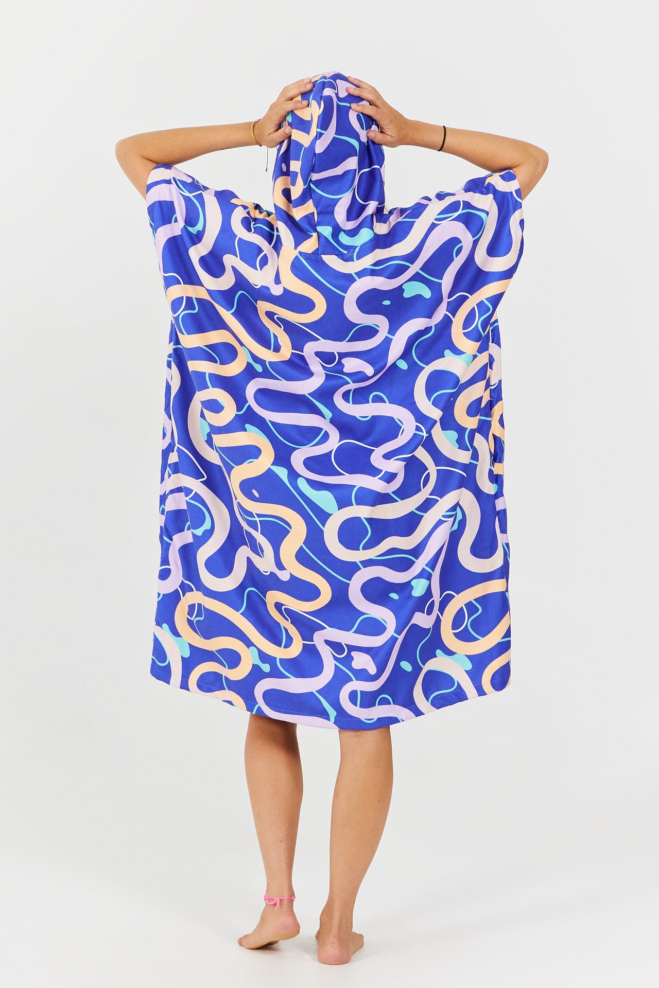Dank ihrer seitlichen Öffnungen und ihres weiten Schnitts lassen sich die Strandponchos der Outdoor Series leicht anziehen und garantieren große Bewegungsfreiheit.