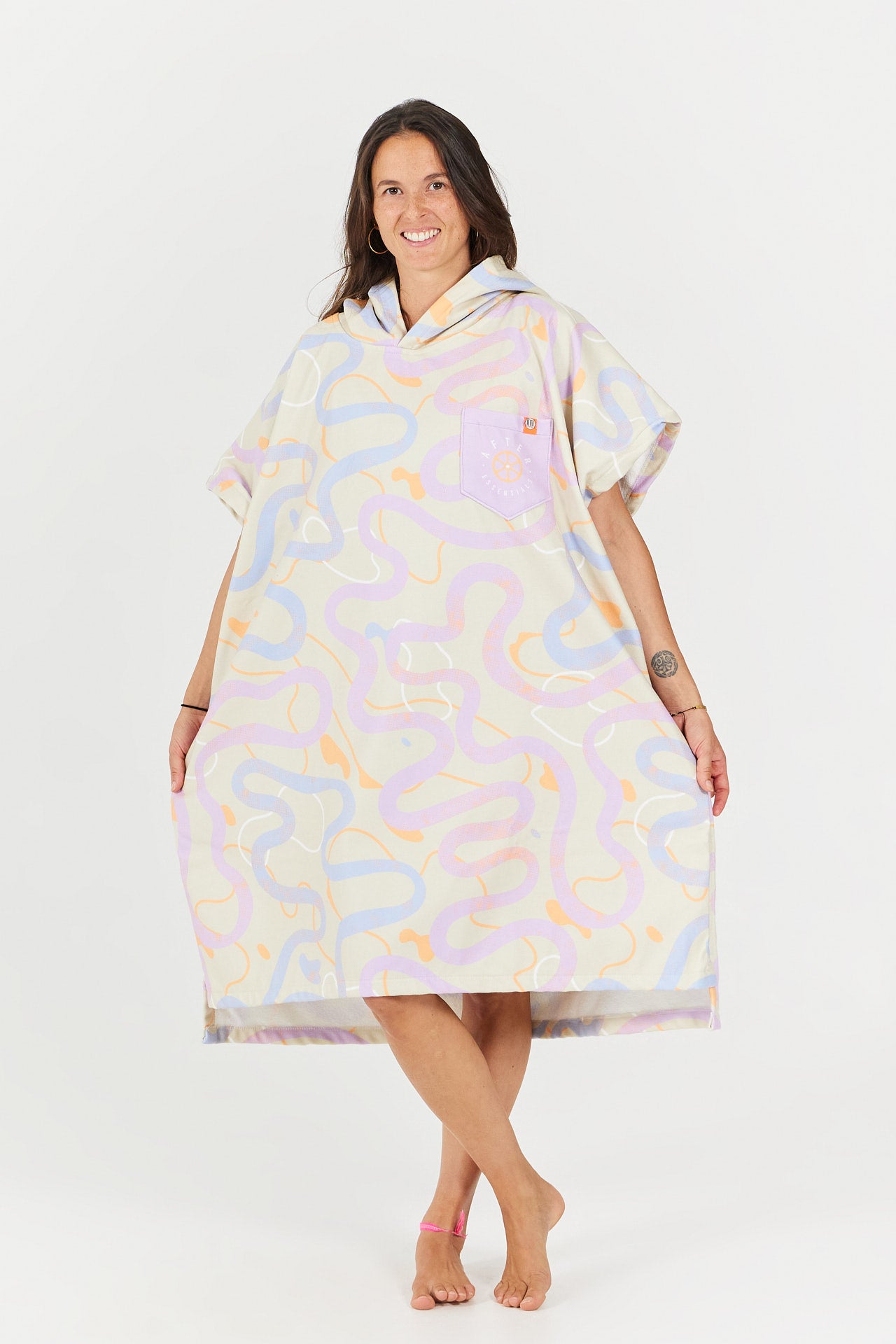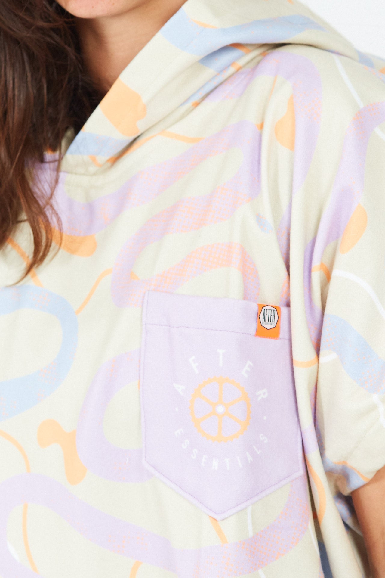 Der RoadBike Wickelponcho aus der Outdoor Series wurde von Radsport- und Outdoor-Enthusiasten inspiriert. Seine stilisierten, farbenfrohen Motive mit kurvigen Straßen auf sandfarbenem Hintergrund erinnern an Radtouren, lange Passüberquerungen und das Vergnügen, sich durch die Natur zu bewegen.