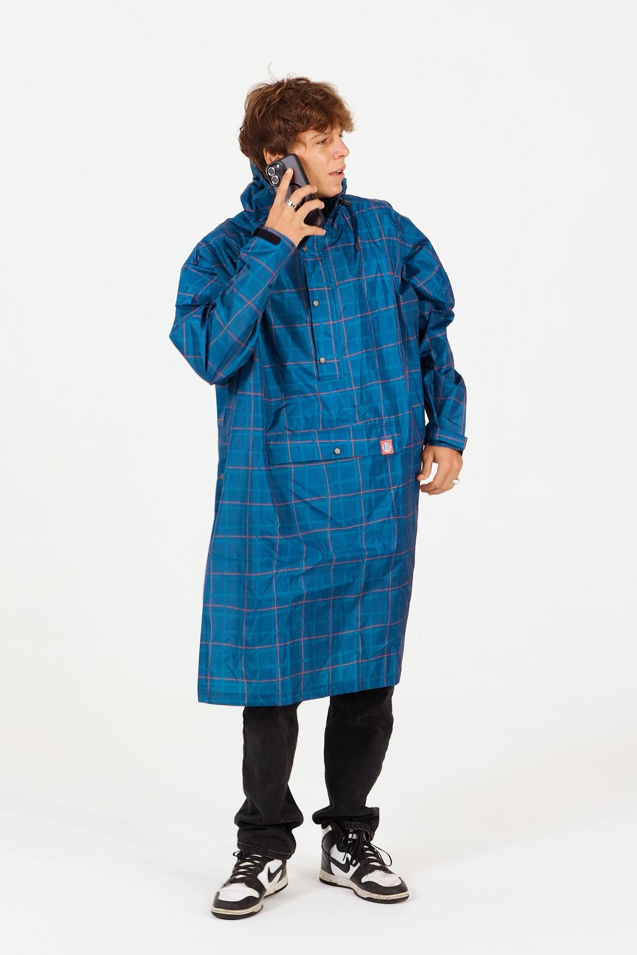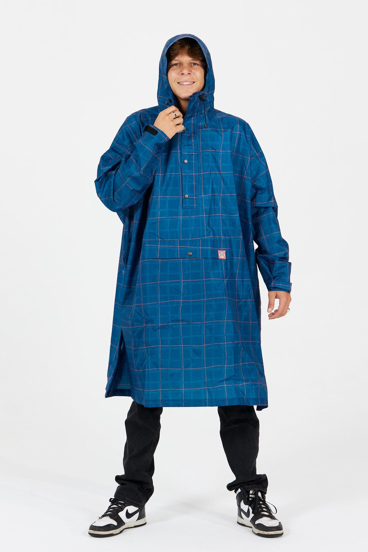 Vereine Stil und Funktionalität mit diesem Regenponcho, inspiriert von den traditionellen Fischernetzen der Ostsee. Sein grafisches Muster, das an die Maschen der Netze erinnert, verleiht dir einen modernen, urbanen Look mit einer rustikalen Outdoor-Note. Vollständig wasserdicht, leicht und einfach zu transportieren schützt dich dieser Poncho zuverlässig vor Wind und Wetter. Die große Kapuze, der weite Schnitt und die verstellbaren Ärmel sorgen für optimale Bewegungsfreiheit – ob bei Regen in der Stadt oder am Meer.