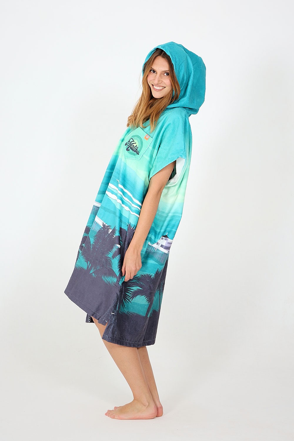 Capitale historique du surf aux États Unis, Malibu, la ville où les montagnes et l’océan se rejoignent, est connue pour ses plages ensoleillées toute l’année et son mythique spots de surf aux droites interminables. Ce poncho aux inspirations californiennes, vous projette directement en haut de la colline du célèbre surf spot admirant les légendes du longboard exécuter leurs plus beaux nose rides.