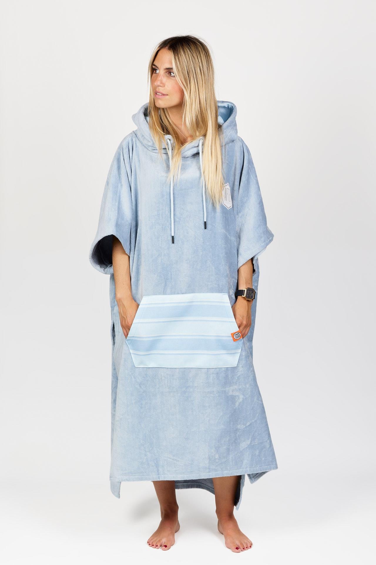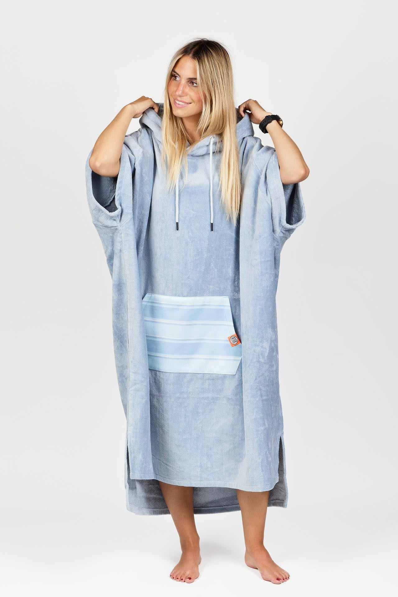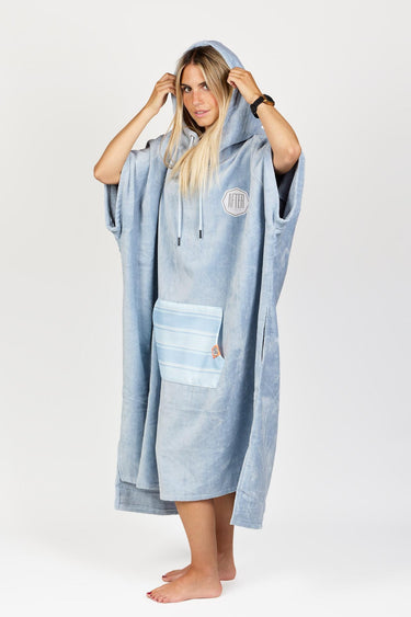 Poncho High End - 100% Coton - Bleached Blue