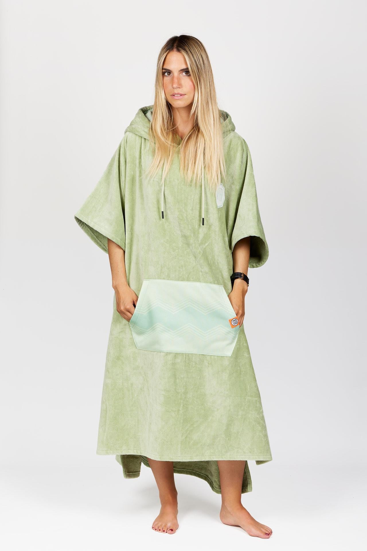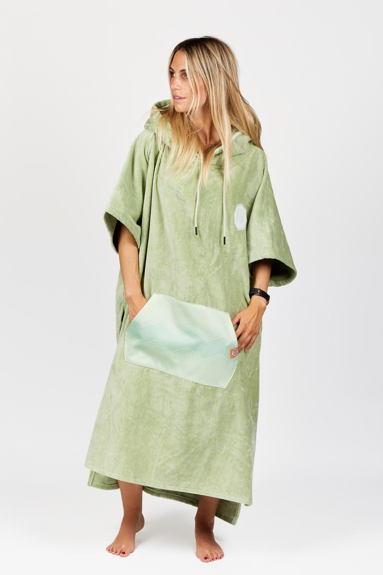 Élégance, confort et style se rencontrent avec le poncho High End Tender Green. Sa coupe longue et son tissu épais te gardent parfaitement au chaud après chaque session ou baignade. La poche kangourou et l’intérieur de la capuche, ornés d’un motif ethnique unique, apportent une touche authentique et sophistiquée.