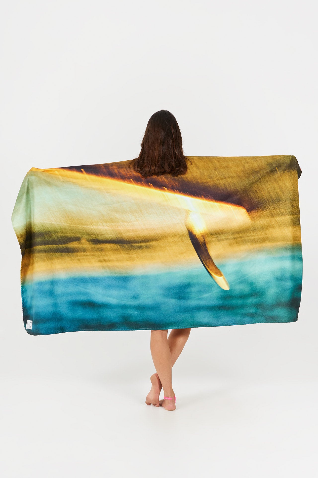 Cette serviette de bain présente une photographie artistique saisissante issue de la collection d’Arto : un longboard posé sur la plage de la North Shore à Hawaï, baigné par la lumière dorée du coucher de soleil. Chaque détail de l’image transforme la serviette en véritable œuvre d’art à utiliser au quotidien.
